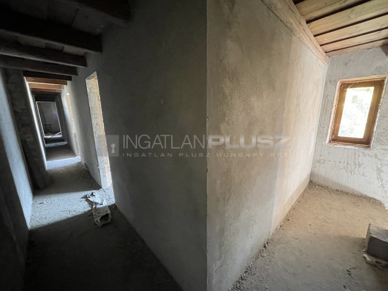 Pátkán eladó egy befejezésre váró egybenyitott, 120 m2-es, dupla parasztház. A házban a következő helyiségek kerültek kialakításra: 40 m2-es konyha-nappali, előtér, vendég WC kézmosóval, fürdőszoba (kád, zuhany, wc), 3 hálószoba, mosókonyha és egy kazánház. Részletes leírás: a ház száraz, külső vízszigetelés megtörtént. Külső fala vályog, ezáltal jó hőmegtartó képességgel rendelkezik, a belső, új falak kisméretű téglából készültek. A ház teljes egészében a szerelőbeton elkészült, erre kerül a hőszigetelés majd a padlófűtés, aminek befejezése a vevőre vár. A falak végig bevakolva vályoghoz illeszkedő szellőző vakolattal. Fa, 3 rétegű üveggel ellátott nyílászárók is bekerültek (a bejárati ajtó és két ablak kivételével, így megkönnyítve a munkavégzést és megvédendő a nyílászárókat, de ezek is megvannak már). A tetőszerkezet ép, esetleg 1-2 tetőlécet és cserepet kell cserélni. A házban víz és villany is van (be kell kábelezni igényeknek megfelelően), gázcsonk az udvarban, bármikor beköthető.