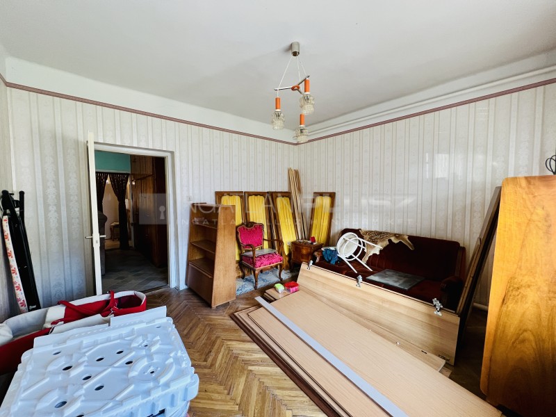A téglaépítésű ház (B30-as falazat, fa–nádszövet födém) kb. 100 m² alapterületű, három szoba, nappali, konyha–étkező, kamra, fürdő és külön WC található benne.
