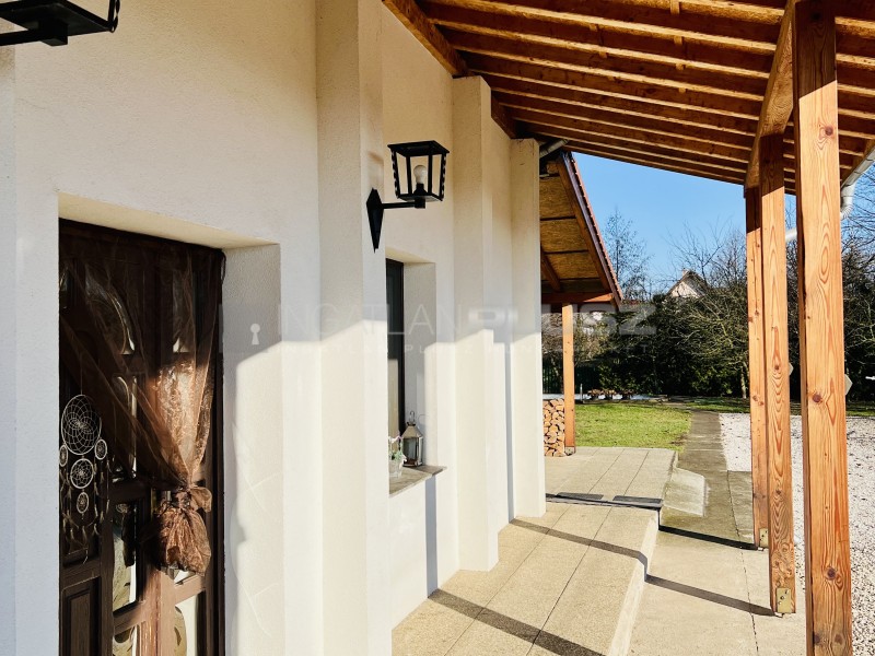 A ház teljesen akadálymentesített, riasztóval és kamerarendszerrel felszerelt, a riasztó be van kötve központi értesítő rendszerbe.