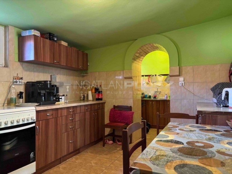2 és fél szoba, nappali, étkező, konyha, kamra, fürdőszoba, WC, zuhanyzó. Az alsó szint részben akadálymentesített. A fűtést gázkazán biztosítja, de egy fatüzelésű öntöttvas kályha is segíti a meleget.