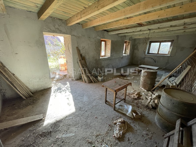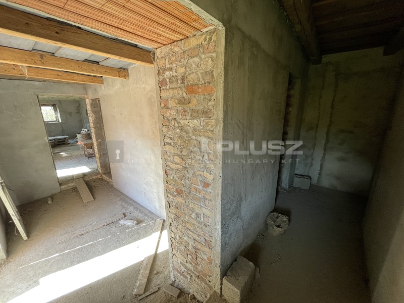 Pátkán eladó egy befejezésre váró egybenyitott, 120 m2-es, dupla parasztház. A házban a következő helyiségek kerültek kialakításra: 40 m2-es konyha-nappali, előtér, vendég WC kézmosóval, fürdőszoba (kád, zuhany, wc), 3 hálószoba, mosókonyha és egy kazánház. Részletes leírás: a ház száraz, külső vízszigetelés megtörtént. Külső fala vályog, ezáltal jó hőmegtartó képességgel rendelkezik, a belső, új falak kisméretű téglából készültek. A ház teljes egészében a szerelőbeton elkészült, erre kerül a hőszigetelés majd a padlófűtés, aminek befejezése a vevőre vár. A falak végig bevakolva vályoghoz illeszkedő szellőző vakolattal. Fa, 3 rétegű üveggel ellátott nyílászárók is bekerültek (a bejárati ajtó és két ablak kivételével, így megkönnyítve a munkavégzést és megvédendő a nyílászárókat, de ezek is megvannak már). A tetőszerkezet ép, esetleg 1-2 tetőlécet és cserepet kell cserélni. A házban víz és villany is van (be kell kábelezni igényeknek megfelelően), gázcsonk az udvarban, bármikor beköthető.