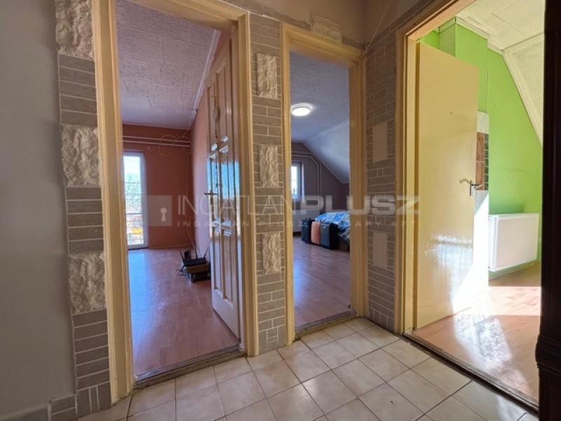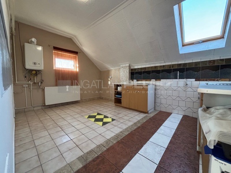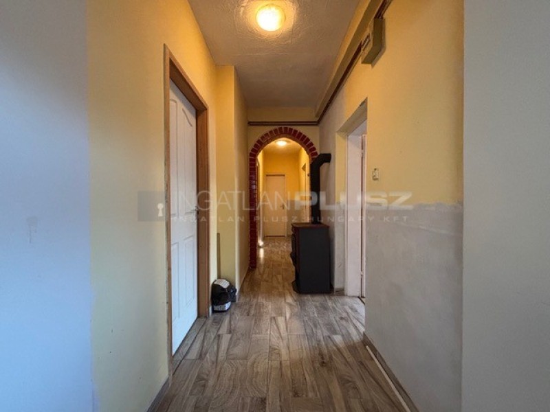 2 és fél szoba, nappali, étkező, konyha, kamra, fürdőszoba, WC, zuhanyzó. Az alsó szint részben akadálymentesített. A fűtést gázkazán biztosítja, de egy fatüzelésű öntöttvas kályha is segíti a meleget.