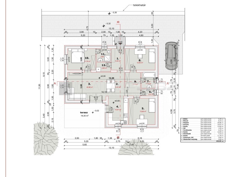 • Nappali: 20,86 m² (közvetlen kijárat a teraszra)