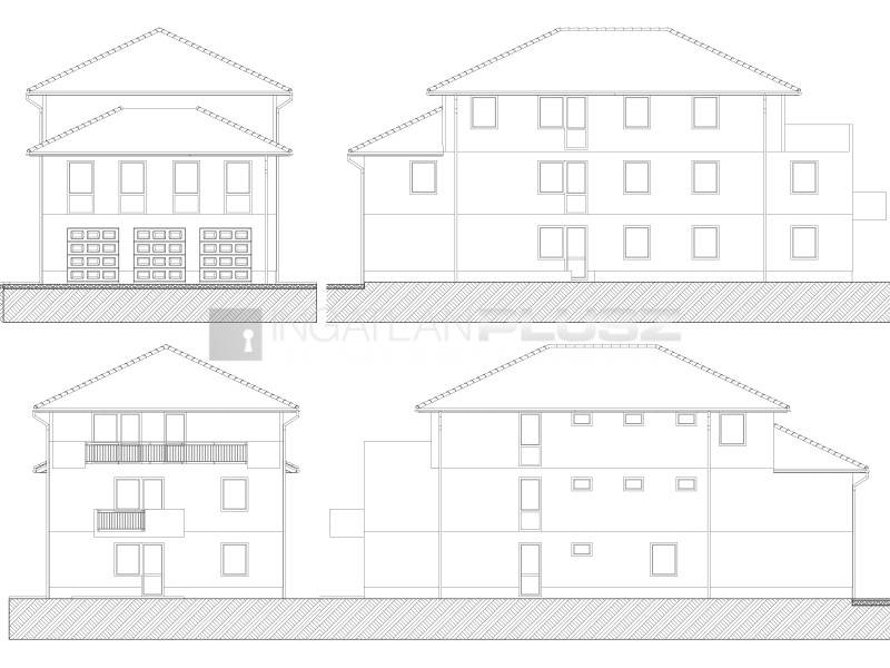 A nyílászárók egyedi gyártásúak, kívül antracit fóliával ellátottak, 5 kamrás, fokozottan hőszigetelt üvegezéssel. A garázsajtó fokozottan hőszigetelt, szekcionált, elektromos motorral működik, két darab távirányítóval.
