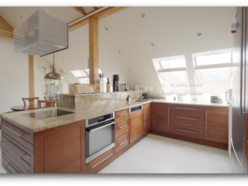 A lakás egyik legnagyobb különlegessége az amerikai stílusú konyha, amely valóban az otthon szíve. Nem csak látványos, de funkcionálisan is kiváló: gránit munkalapok, cseresznyefa szekrények, tágas munkaterület és természetes fény. A konyha közvetlenül kapcsolódik a nappalihoz és az étkezőhöz, így ideális vendégfogadásra vagy családi életre.