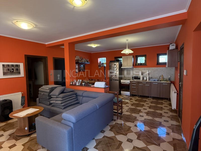 nappali + étkező + amerikai konyha, 2 szoba, valamint fürdőszoba WC-vel egy szinten – minden kényelmesen, lépcsőzés nélkül.